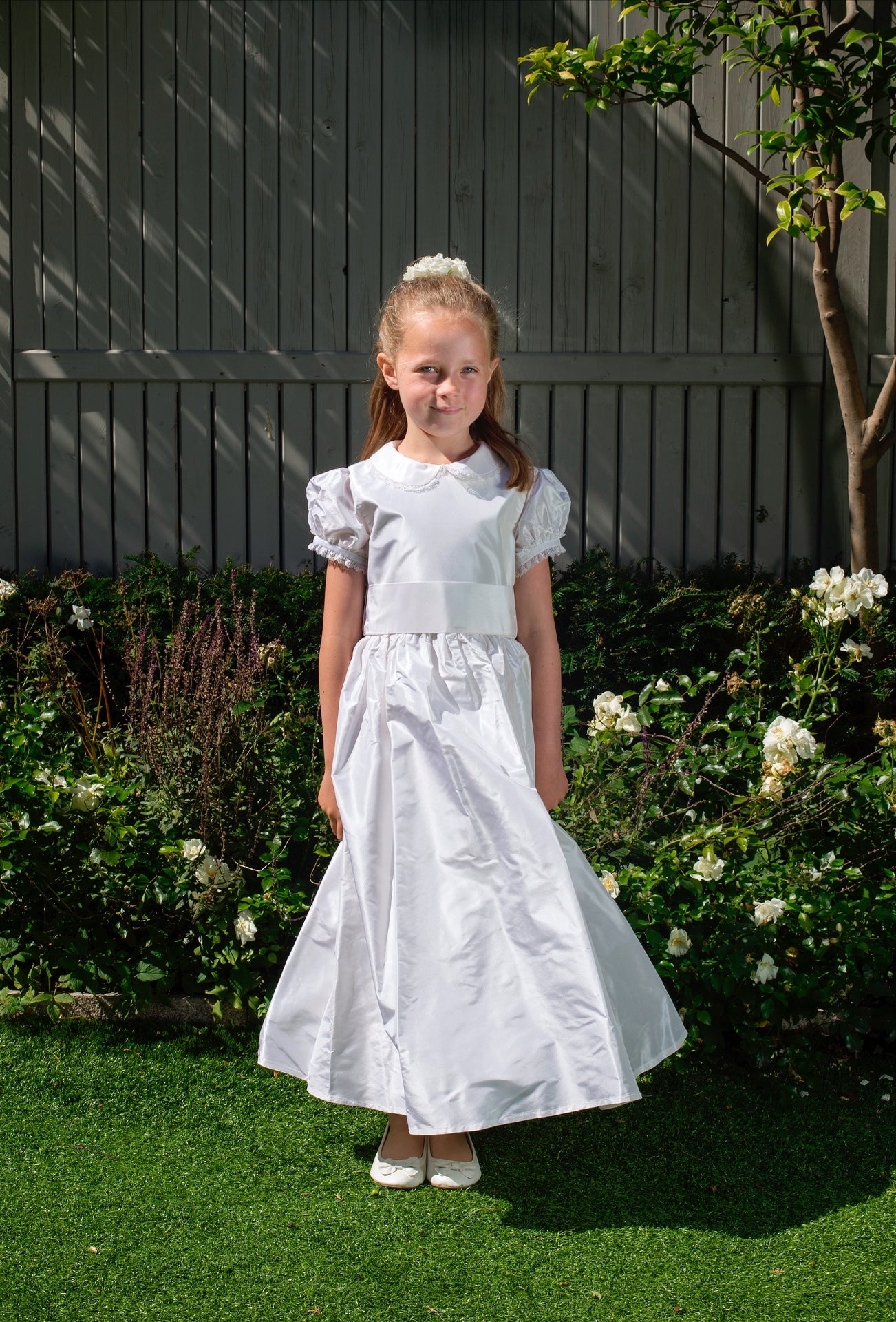 Aimee Style White Silk Girls First Holy Communion Dress Handmade in Ireland.