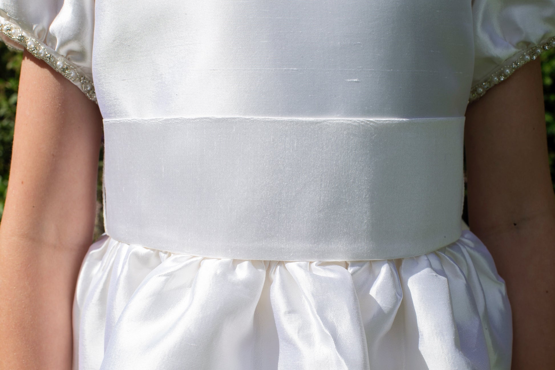 Daniella Style White Silk Girls First Holy Communion Dress Handmade in Ireland.
